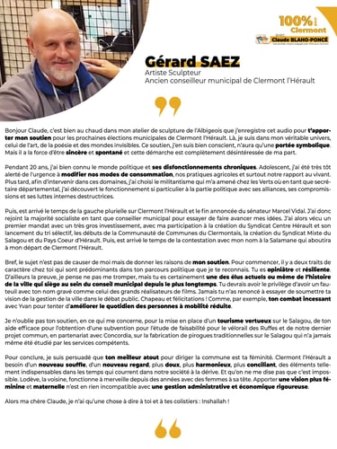 "C'est avec le recul d'un observateur qui ne vote pas dans ce beau territoire de l'Hérault que je regarde se dérouler cette campagne... Avec la satisfaction de constater qu'il existe encore, ici ou la, des responsables politiques qui s'investissent pour le seul bien des administrés, sans tomber dans cette politique politicienne qui gangrène tant de communes.